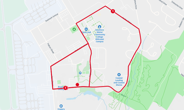 A course map for the 1 mile loop through Brunswick Landing.